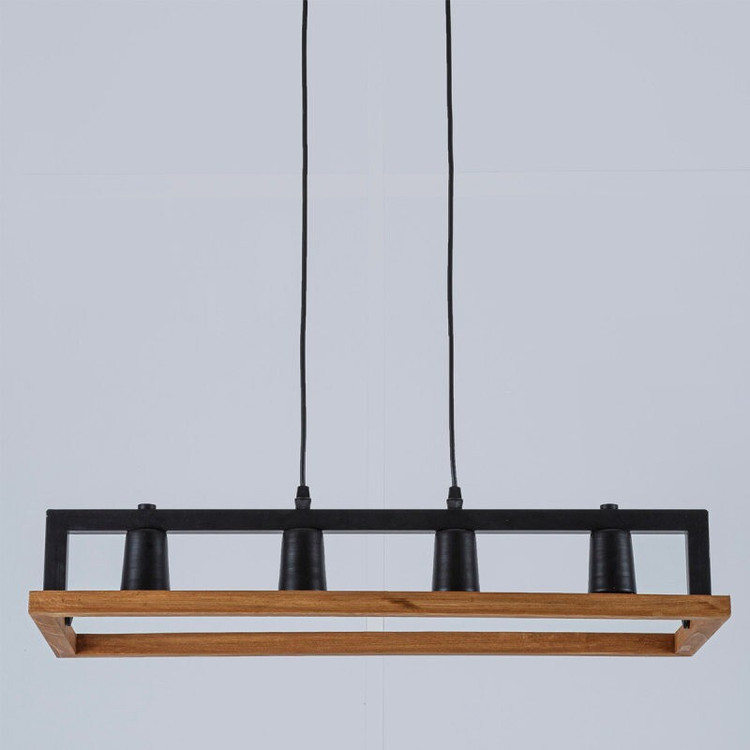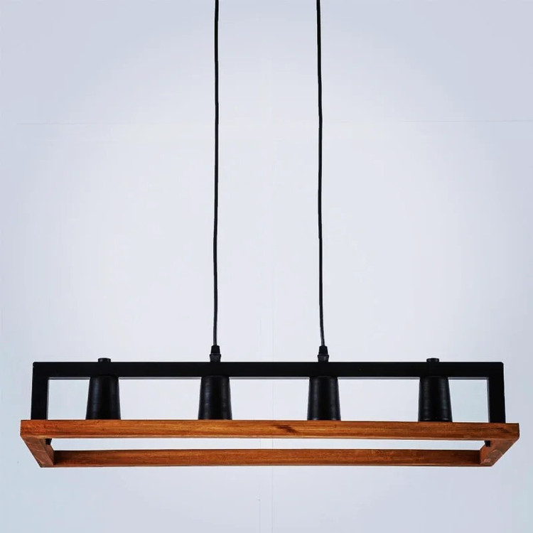 لوستر 4شعله که با چوب وفلزترکیب شده وبابهترین لوازم جانبی روشنایی ازجمله سرپیچE27 جالامپی کابل پیام افشان و سیم کشی عالی که مونتاژمیشودرنگ فلزمشکی مات که بدون نیاز به تخصص یانصاب میتوان بادوعددپیچ ورولپلاک نصب کرد.